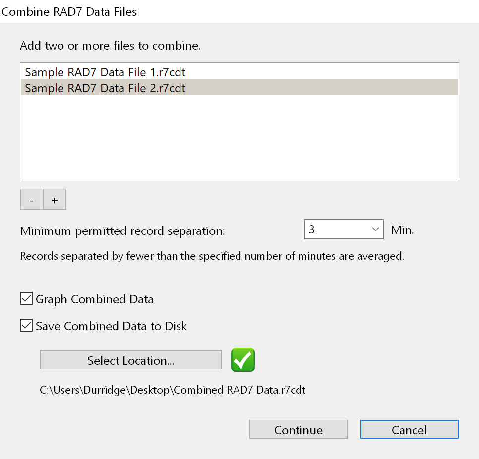 ![]() Figure 4: Combine RAD7 Data Files dialog |