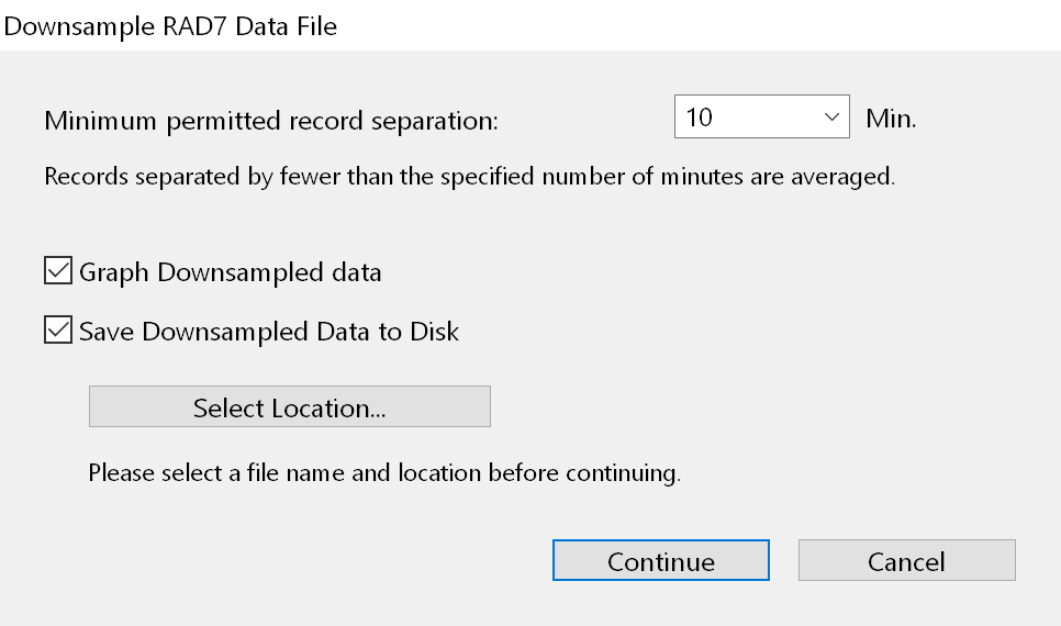 ![]() Figure 5: Downsample RAD7 Data File dialog |