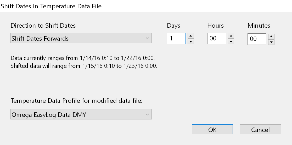 ![]() Figure 7: Shift Dates In Temperature Data File Window |