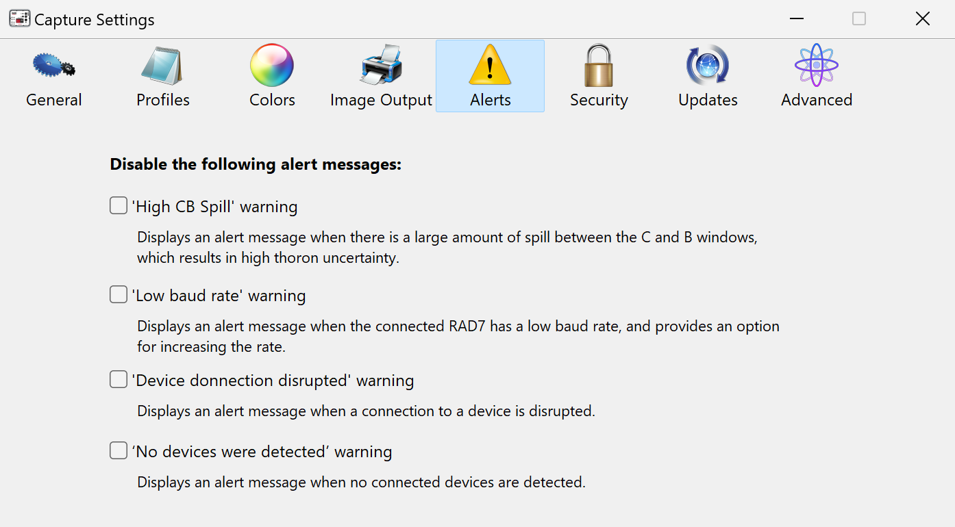 Updates Panel | The Updates panel provides access to controls for checking to see if updates are available for Capture. It is also possible to configure Capture to check for updates automatically. |
