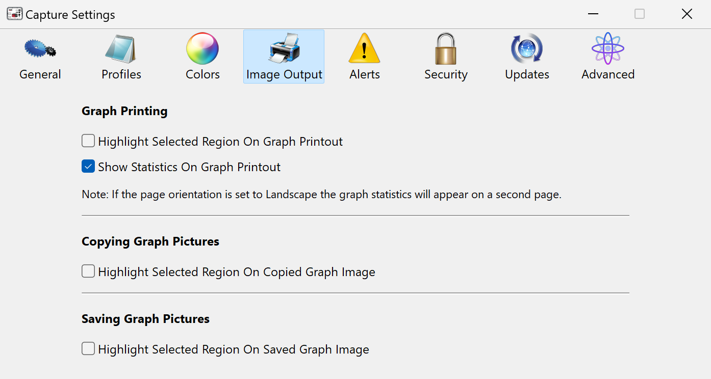 Highlight Selected Region On Graph Picture Checkbox Determines whether the selected region is highlighted on the image when it is saved to disk. |