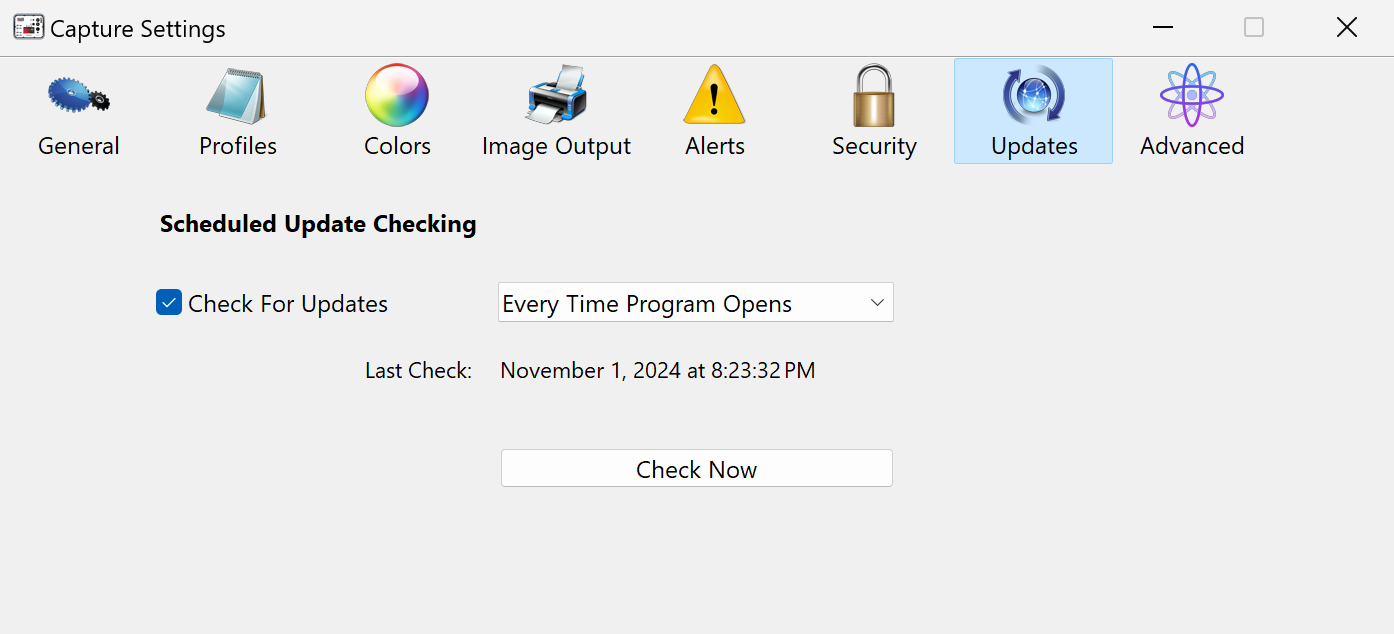 Check Now Button Checks for Capture updates immediately, regardless of the above scheduled update settings. |